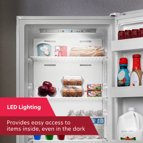 - Organized Storage Options: A large 14.4-cu. ft. capacity allows you a vast storage area illuminated by an interior LED light while 5 shelves, 1 drawer, and 4 door bins aid in organization