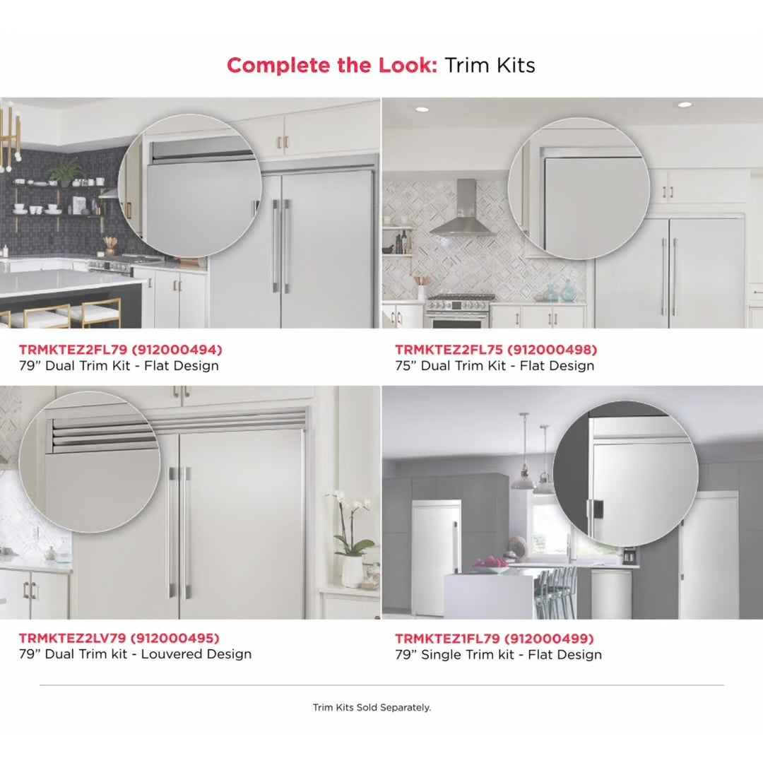 - Upgrade to an eye-catching built-in look with our beautiful single-door refrigerator and customize your kitchen with an optional trim kit and the ability to place refrigerator and freezer together or apart based on your kitchen layout.