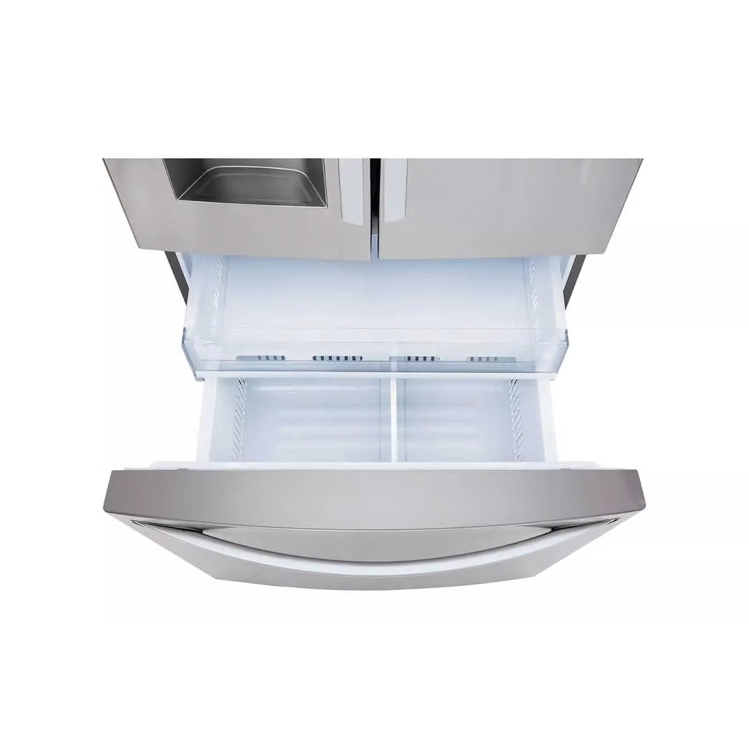 You've ever wished you had more space to get more organized, your wish has been granted. With 28 cubic feet, you get that extra space. You also get LG's Smart ThinQ Technology, letting you control key refrigerator features from anywhere, at any time, right from your smartphone. Plus, our own Slim SpacePlus Ice System frees up even more room in the door and shelf. Aesthetics and functionality come together in perfect harmony with this French-Door refrigerator.