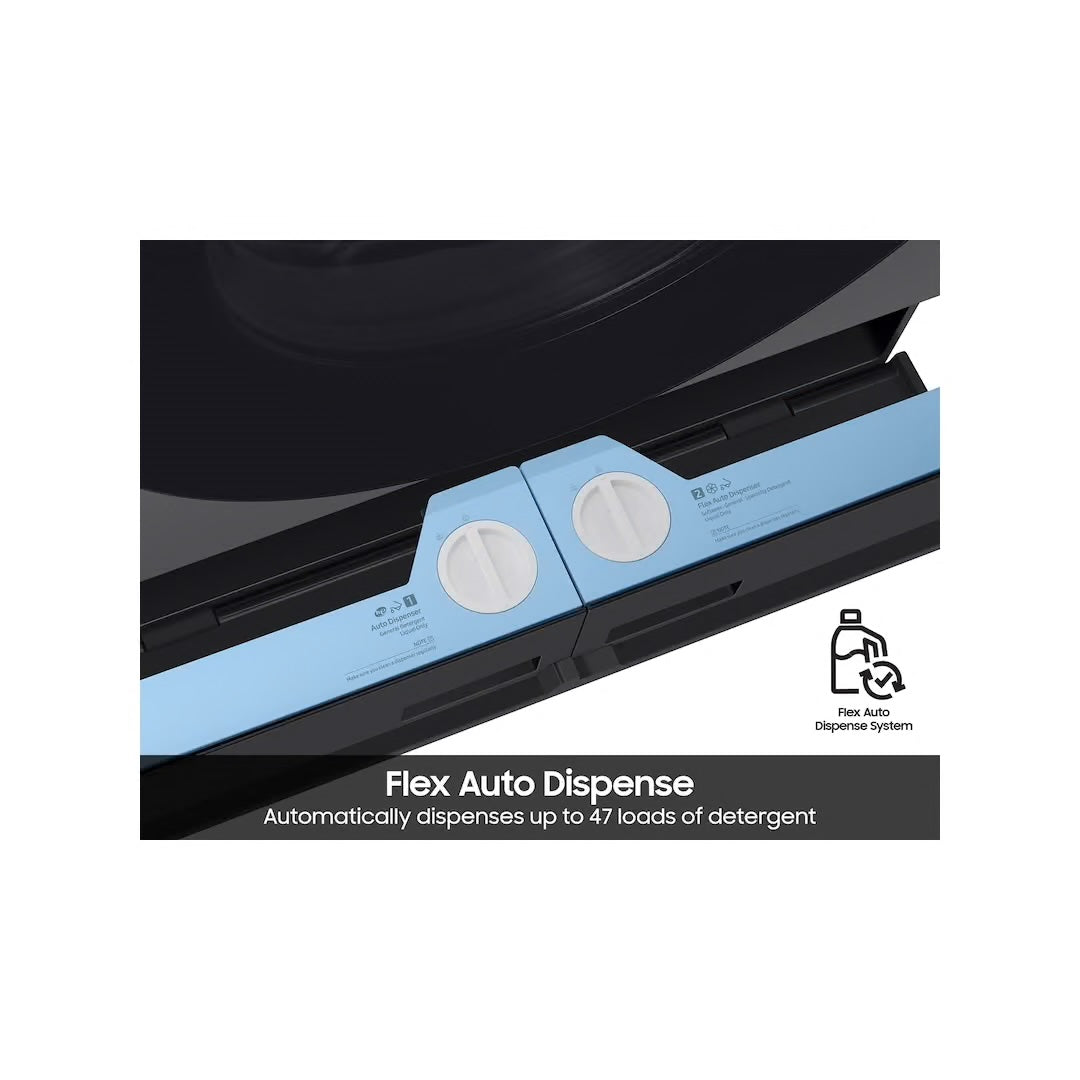 • Automatically dispense up to 47 loads of detergent or flex one compartment to dispense up to 34 loads of softener and 25 loads of detergent with the Flex Auto Dispense System.