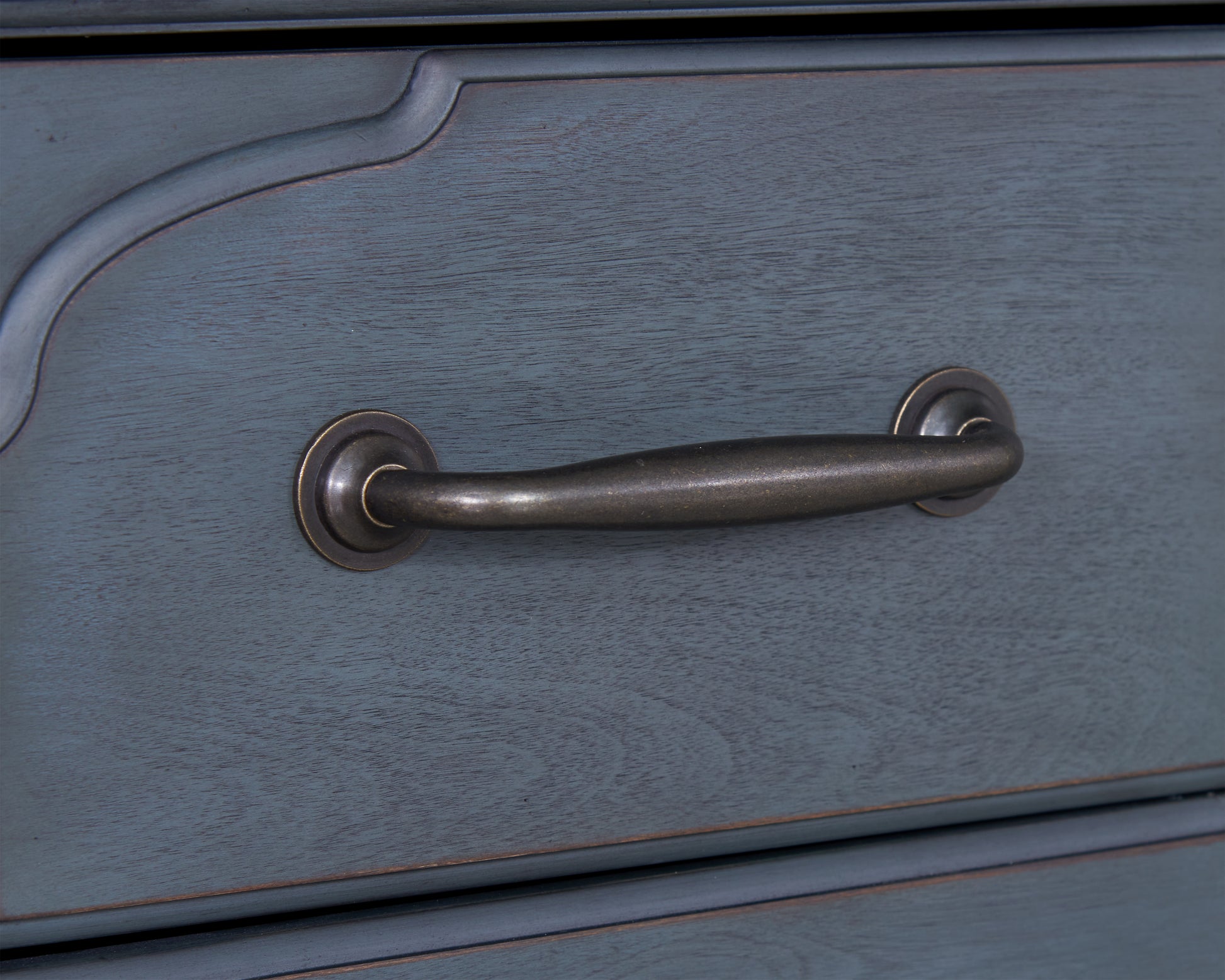 The Americana 84" TV Stand combines classic charm with a coastal flair. Finished in Corduroy Blue with light distressing and adorned with brushed hardware, this piece captures a timeless, heirloom quality. Perfect for enhancing your home with a touch of traditional style, it's as iconic as Baseball, Apple Pie, and Rock & Roll.