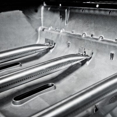 Stainless steel Flav-R-Wave™ cooking system provides even heat distribution, vaporizes drippings for great barbecue flavor, and protects the burners