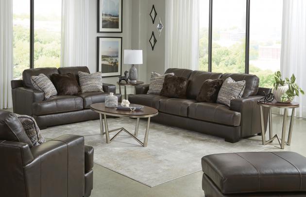 Marco features luxurious genuine Italian Leather with an eclectic mix of decorative toss pillows - including faux fur! Marco is available in your choice of two colors: Gunmetal or Chocolate.