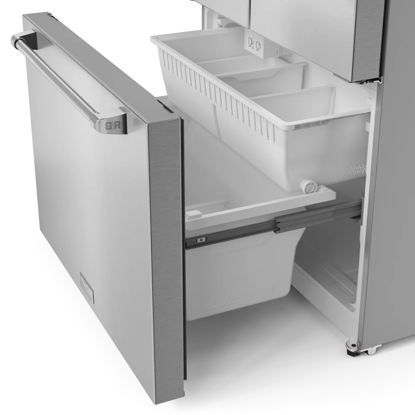 Experience superior freshness with the 36 Inch 20.3 cu ft French Door Counter Depth Refrigerator in Stainless Steel. With advanced cooling technology, spacious interiors, and customizable features, this refrigerator ensures your ingredients stay at peak freshness. Designed for durability and efficiency, it brings top-tier performance and style to your kitchen.