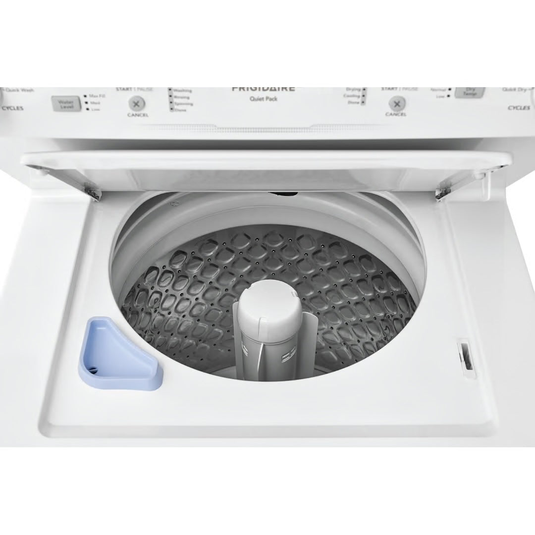 The Frigidaire Washer and Dryer Unit is the perfect laundry combination for small spaces. This stacked combo includes a 3.9-cu. ft. capacity washer, and large 5.6-cu. ft. capacity dryer. Choose from multiple preset cycle options to customize each load of laundry. Integrated cycle lights allow you to check the status of each load of laundry at a glance. This unit comes in a sleek white exterior finish with a stainless steel interior drum.