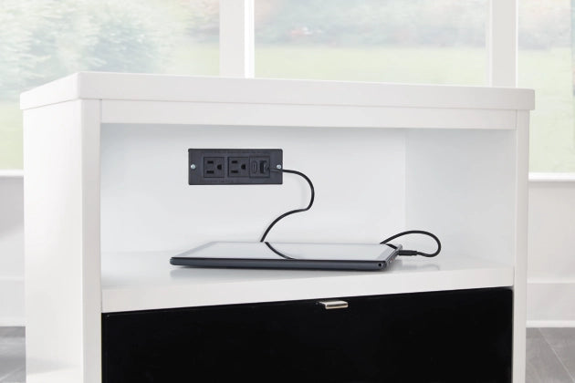 Combining a high-gloss white finish with a black drawer front, this chairside end table proves opposites really do attract. It's the perfect blend of modern style and functionality, with plenty of space for essentials and convenient USB charging. What a smart choice on so many levels.