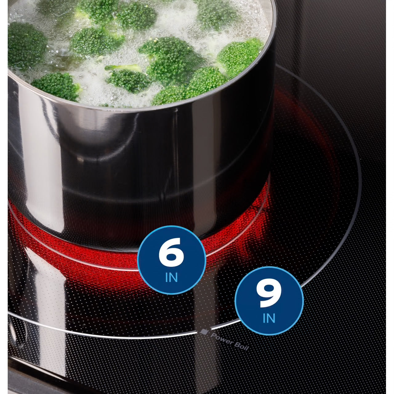 - 9 in./6 in. power boil burner - easily adjust to any size pot or pan with a convertible 6 in. and 9 in. element that make it easy to boil water faster