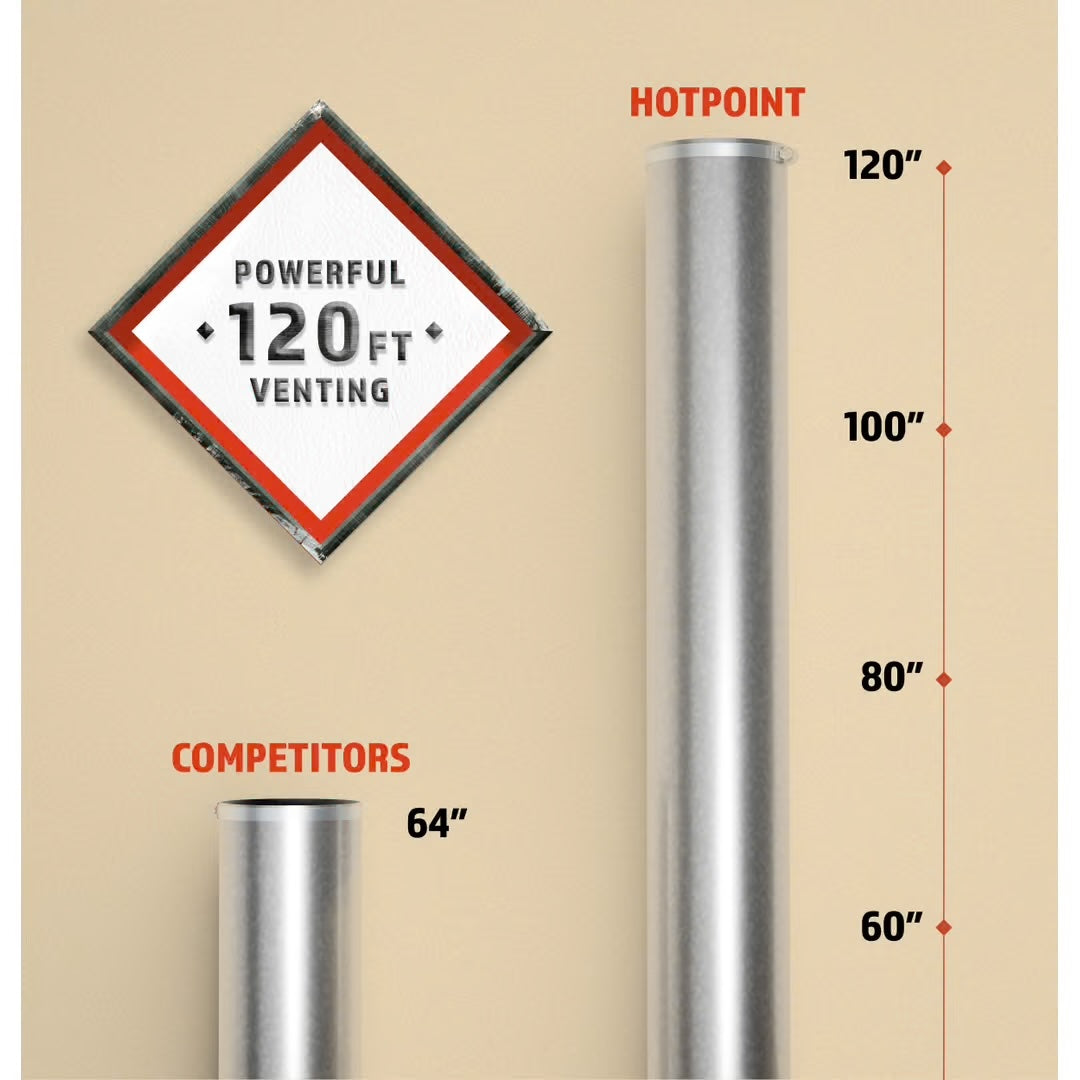 - Powerful venting & Flexible installation- Powerful airflow offers long-lasting performance from lint build-up and offers venting solutions up to 120 feet for greater installation flexibility