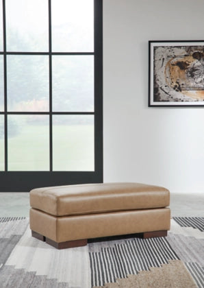 Premium in every aspect, this ottoman is crafted with elevated comfort in mind. Every detail, including the supple leather and faux leather upholstery, has been designed and refined to look and feel luxurious. Whether you use this ottoman as an inviting accent or a comfortable footrest, it's sure to be a rich addition to your home.