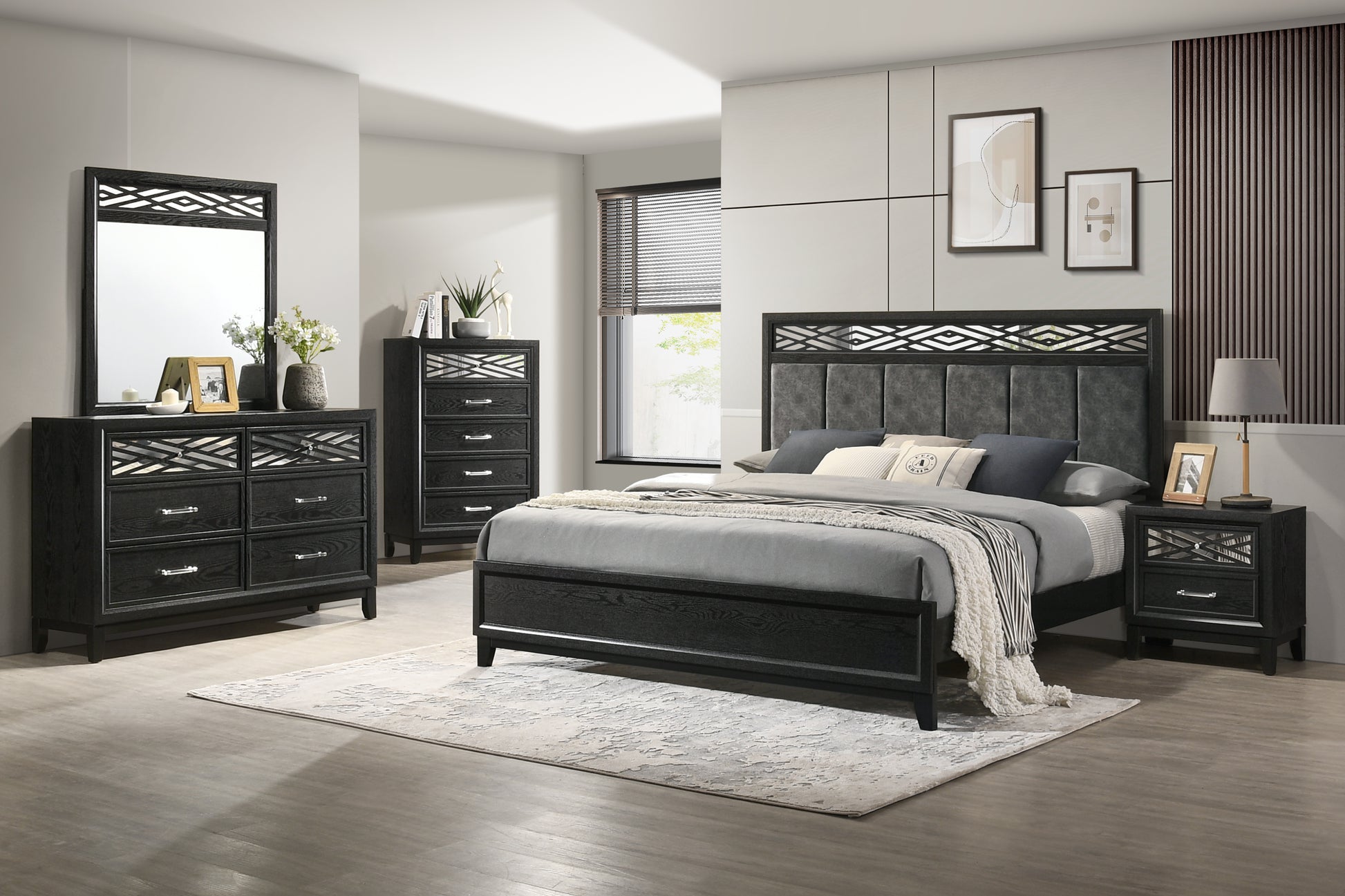 - Sleek and Sophisticated: This design features clean lines enhanced by a chic, low-sheen black finish, exuding a bold and refined elegance. The geometric cut-outs, backed with mirror-like Mylar, add a touch of luxury and modern glamour.