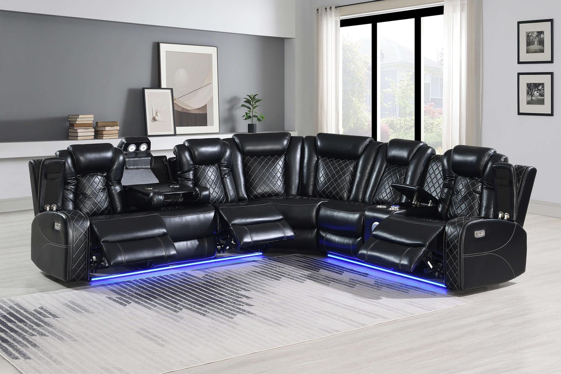 The Orion Motion Collection is a comfortable and stylish choice for any home. The collection includes a sofa with dual recliners, a console loveseat with dual recliners, and a glider recliner, providing you with plenty of options for relaxation.Made from a combination of 80% Polyester and 20% Faux leather, the Orion Motion Collection is upholstered in black. The collection storage arms, a drop down center sofa back drink tray with a lift up light bar, and a wireless charger, making it convenient and practical for any space.In addition, the Orion Motion Collection includes theater lighting on the sofa and loveseat, as well as a Bluetooth speaker on the loveseat. The collection is also equipped with coil cushions and a hardwood/plywood frame, ensuring comfort and durability. The knockdown wing feature makes it easy to transport and assemble.Overall, the Orion Motion Collection is a stylish and comfortable choice for any home. Its convenient and durable construction make it a great addition to any living space.