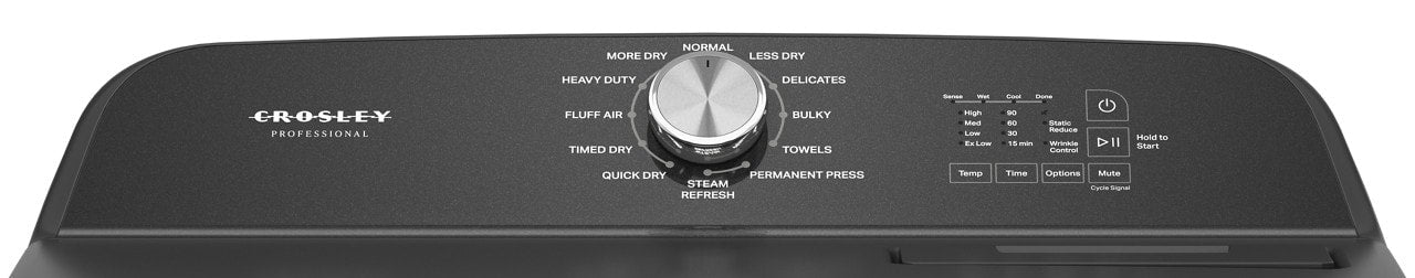 Crosley 7.0 cu.ft. Electric dryer brings maximum power with modern, sleek design. The three-way venting allows for more efficient drying time, which means less wait time for your family. The sanitizing and damp alert features give you peace of mind so that you can rest assured your laundry is clean and dry with every cycle.