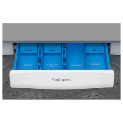 - Smart FlexDispense - Dedicated dispensers for detergent, detergent packs like Tide PODS, fabric softener, and other common additives delivering faster activation and optimal cleaning performance