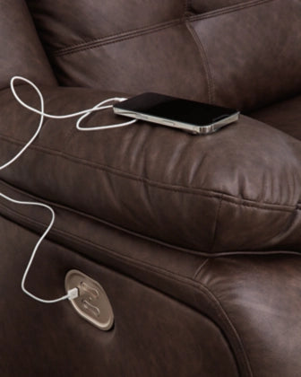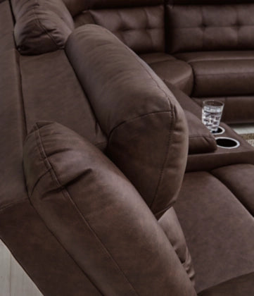Elevate the everyday with this power reclining sectional. With easy one-touch reclining and spacious seating, the piece offers relaxation and unparalleled coziness. Its faux leather upholstery is comfortably practical and beautifully enhanced with stylish contrast stitching. Factor in ample padded arms and a tufted lumbar area and you’ve got the perfect spot to wind down.