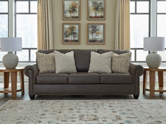 This sofa marries classic character with a contemporary attitude. Love the timeless look of leather? Its take on deep brown faux leather is versatile enough to pair with styles from traditional to modern, at a price that won’t break the bank. Details like nailhead trim and roll arms polish off the piece with flair.