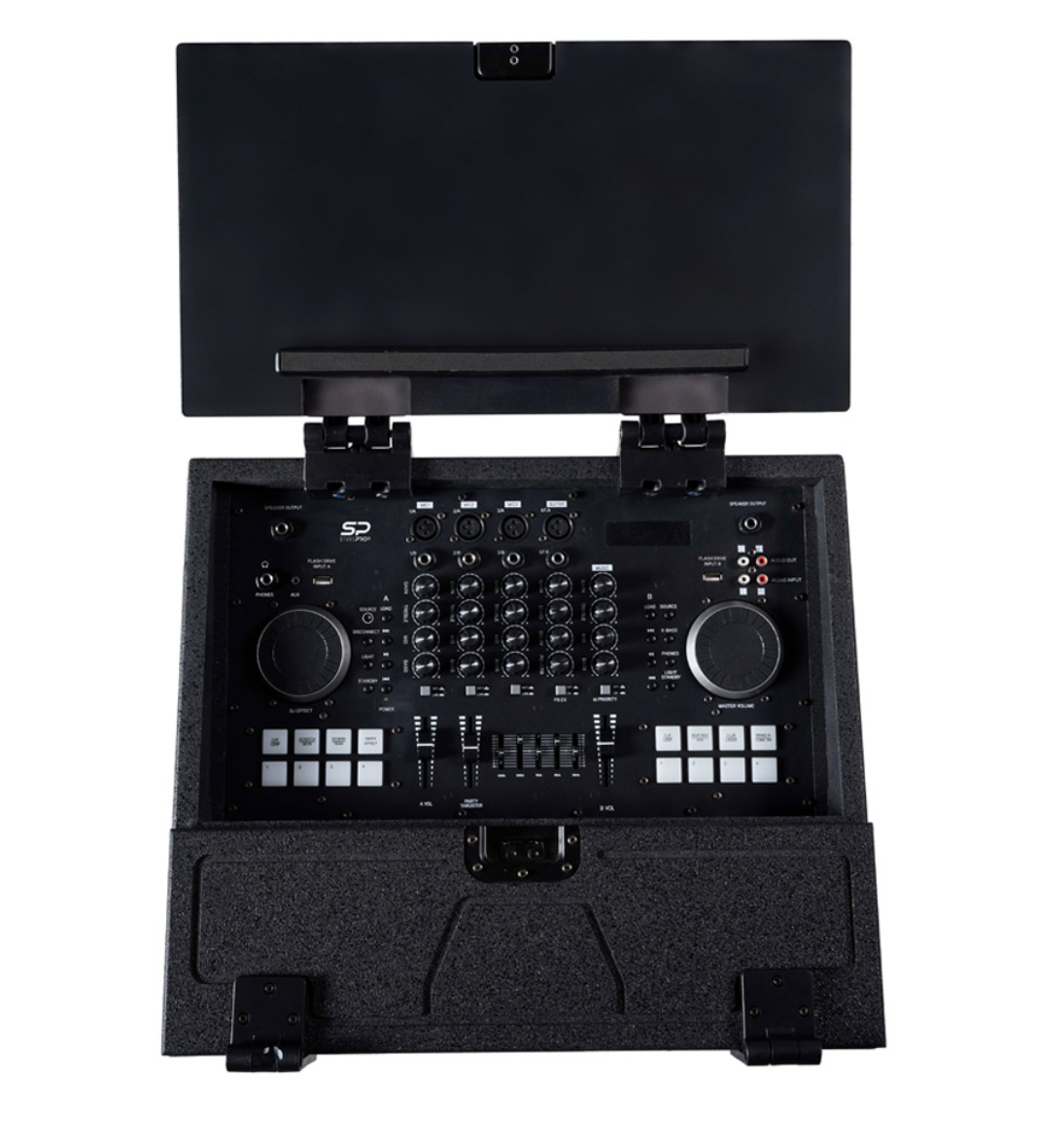 A ready to go all in one DJ package fully incorporated into one compact self contained unit. lt fulfills all of your requirements with one easily transportable, easy to set up system. While on the go, there are built in compartments for easy storage for both speakers and tripods.