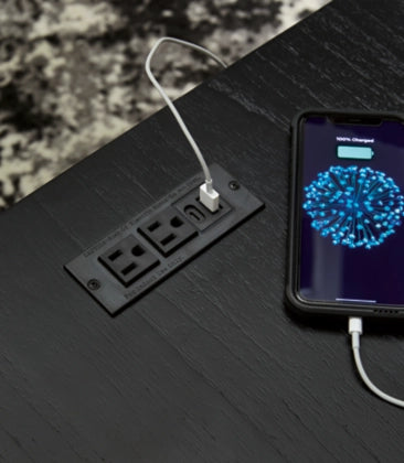 If you are a lover of simplicity, this end table is the perfect choice. Its black finish, casual contemporary design and spacious storage capacity provide functional style wherever it’s displayed. And with conveniently located USB charging ports, this table keeps up with your high-tech lifestyle.